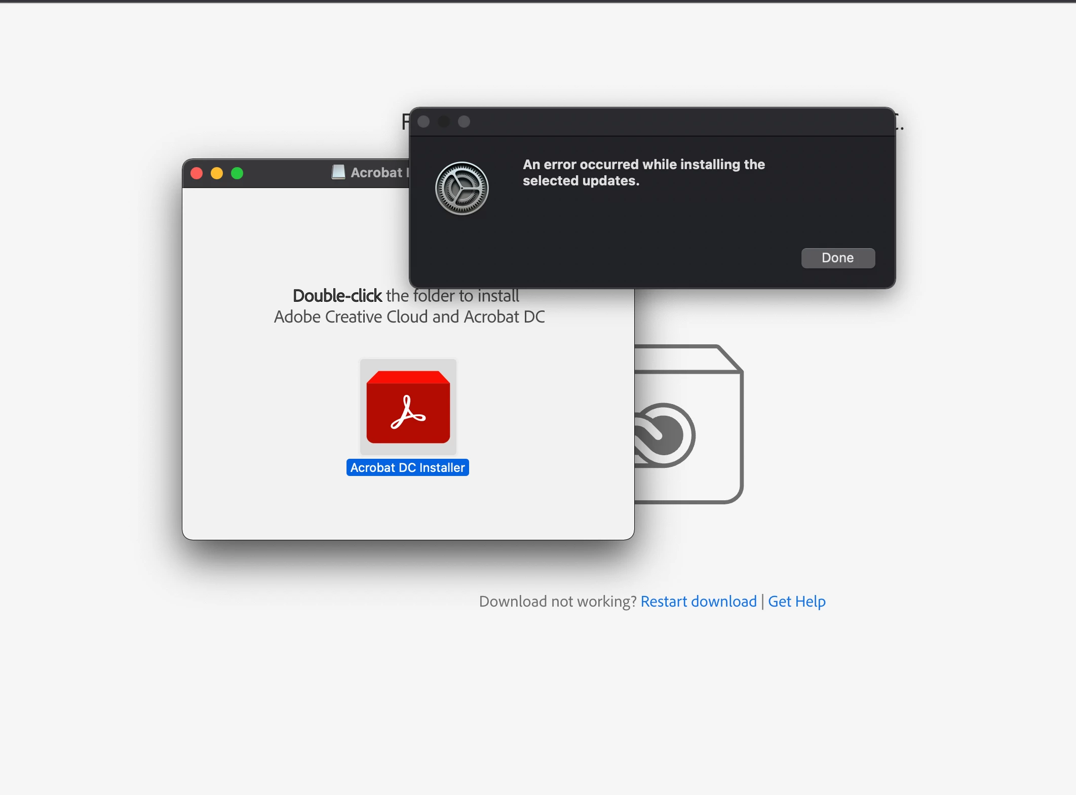 I get this error when trying to install. It's not on the error code list. Please help. I need these programs working today.