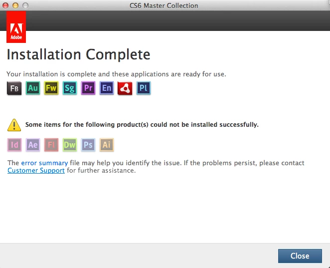 Can't install CS6 apps- photoshop, illustrator, indesign, after effects, flash and dreamweaver.