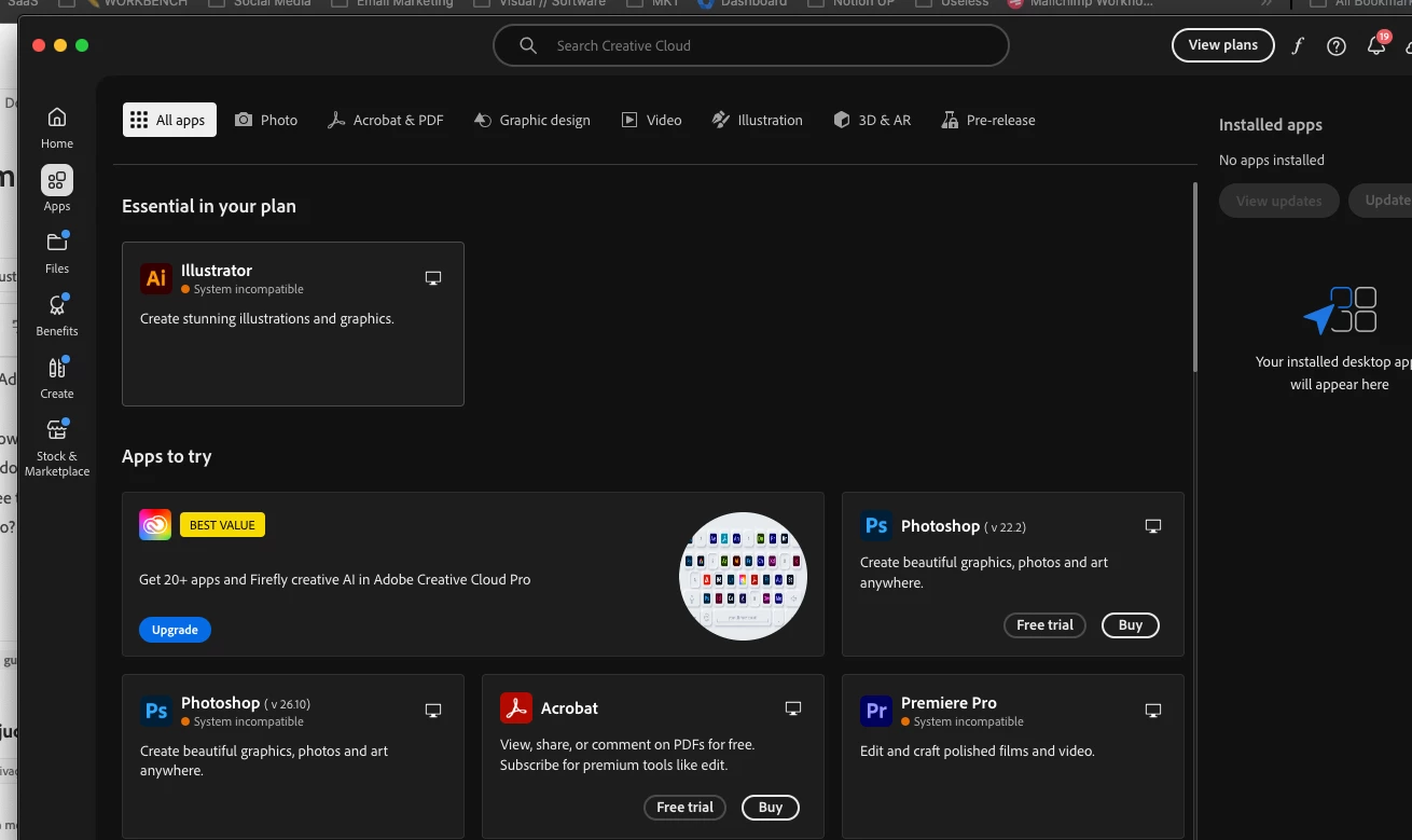 I purchased Adobe Illustrator CC, and when I try to install it, it tells me that it is not compatible with macOS 10.15.7.
