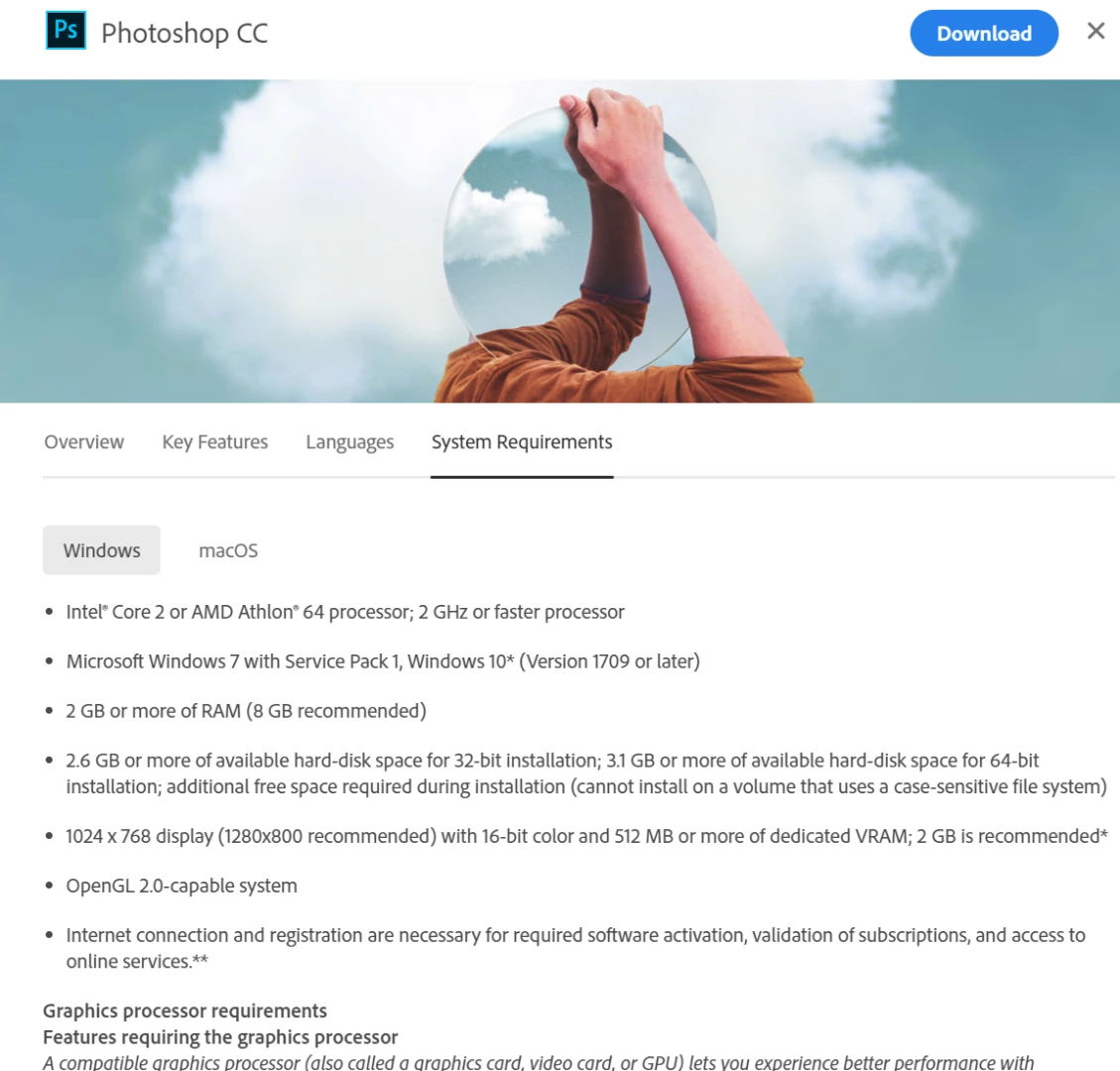 Can't install Photoshop CC2019 - Creative Cloud claims I do not meet system requirements