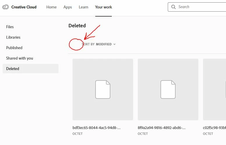 Can't SELECT ALL files in the DELETED folder in Creative Cloud.