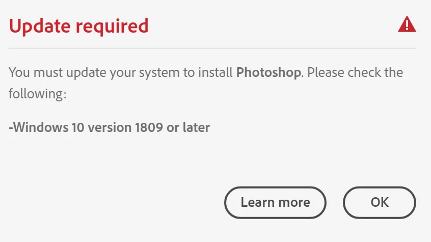 I can't update to the new version of Lightroom, and Photoshop because CC Desktop says they are not compatible with my version of Windows 10 which is version 2004 (Build 19041) even though it's a newer release than the 'minimum requirement' version 1909.