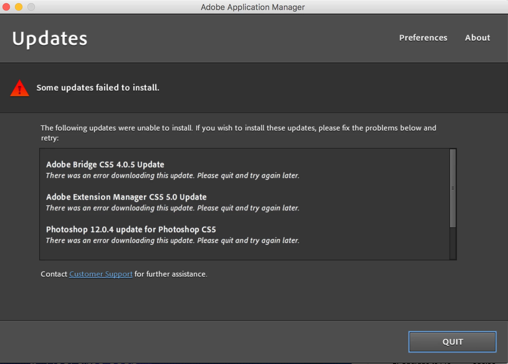 Today I attempted to update CS5, Bridge etc. but the installer kept spitting the dummy & gave the following feedback.