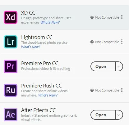 I'm getting a "Not Compatible" notification in the Creative Cloud app, which asks for the minimum Win 10 1703 update. BUt I have the latest 1803 one already ... The same goes for the Lightroom CC and Premiere Rush CC. Other apps have been installed without any problem.