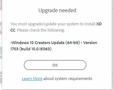 Cannot install Adobe XD on Win 10 Pro (1803)