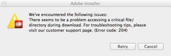 Cannot update Creative Cloud Desktop, Error Code:204, stating it cannot access critcal files needed during download?? Any Suggestions? Tried downloading the installer directly form Adobes website with the same result.