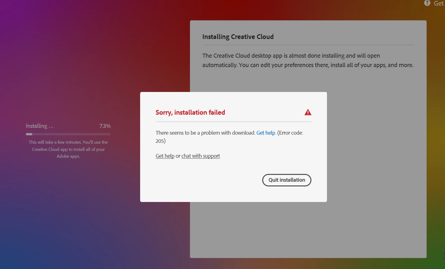 I cant download any of the software above, it downloads to about 7% and then error code 205 pops up. I have seen other post about this issue, i have tried the following;