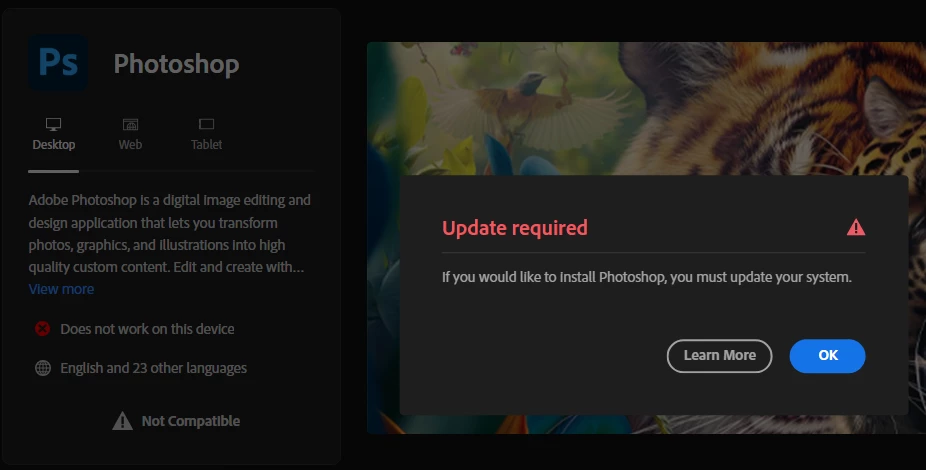 I have a 4 yr old mid spec (at the time) gaming pc and i cant run any version of photoshop or lightroom due to inadiquate specs, when this cant be right because i know of a lot worse computers that can run photoshop, i have checked my gpu driver for updates and updated the windows system. Here are the specs and what not: