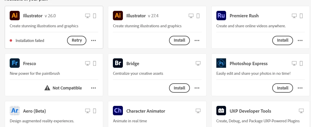 cant install adobe illustrator on my computer