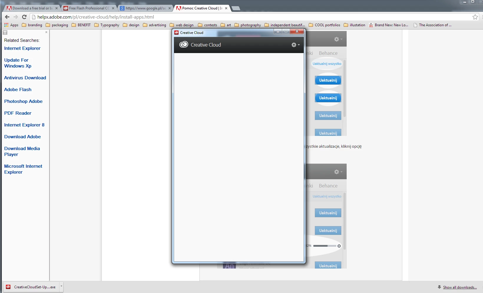 hello. my installed CC app is empty. white background only. ok, there is CC logo on the upper left, that's it. any suggestions ? (i have been reinstalling it few times...) help!!!