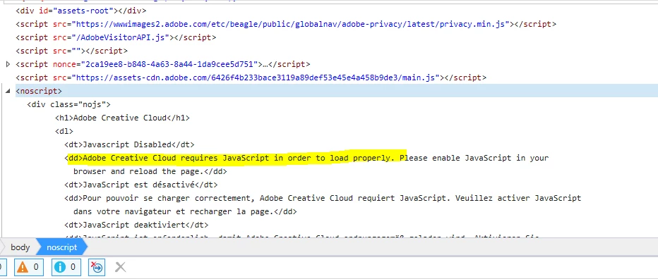 When I use Chrome everything is fine though. I spoke with Adobe chat and the rep said "I should use Chrome", but that's a work-around and not a solution. Internet Explorer is set as my default browser and where all my bookmarks/favs are setup so I'd prefer to stay with IE. Anyone else ever have this issue? When I inspect the blank window it seems to mention I don't have Javascript enabled, yet when I look online on how to check it's already set to 'enable'.