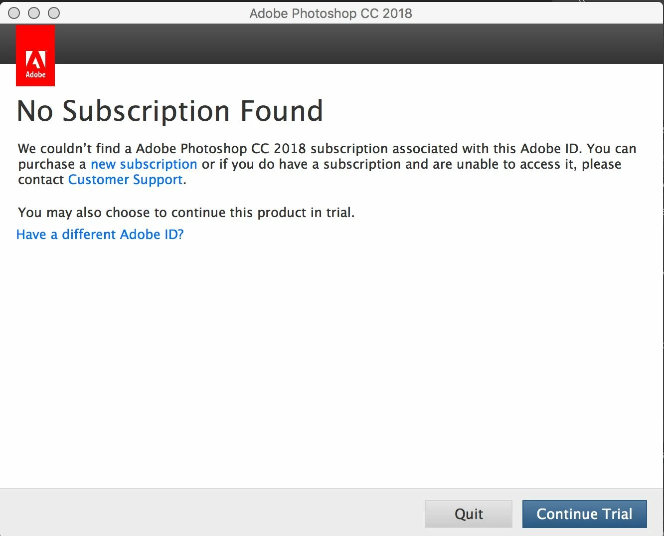 CC is opening fine on the older machine, but upon opening Photoshop and Lightroom apps on the older machine I was met with the dreaded "trial". I have no idea why. The "trial has now expired. I cannot use the laptop versions, the " buy" option is not usable as I already have a subscription.