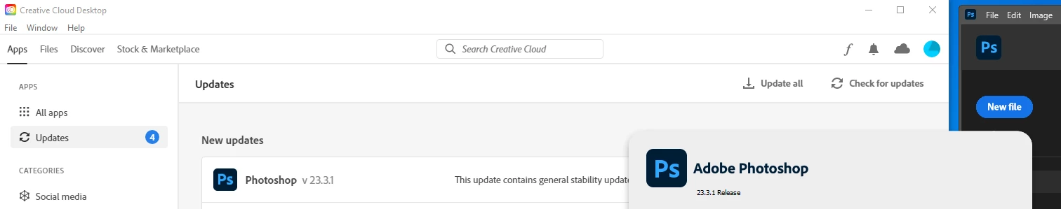 Why is Creative Cloud application showing me updates which I alredy installed over a week or more ago? This is occuring with Photoshop. I alredy installed version 23.3.1 but CC is telling me to install an "update" I alredy have installed. Am I supposed to overwrite my current version which is the current version with the current version? Please explian...