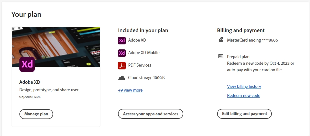 I have claimed the 9month subscription of Adobe XD from Coursera. On my plans it says I have it. But when I go to the app page, there is no place to download. If I click on "try" it asks for another subscription, and when I click on Adobe XD subscription, it says I already have one and it doesnt let me download.