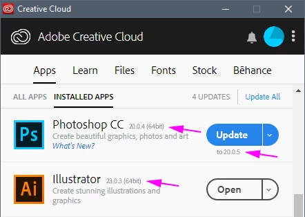 In the list of applications in the Creative Cloud app, I would like the installed version number along with the latest released version number to be clearly displayed. At the moment it is possible to see the installed version number by hovering over the application in the list.