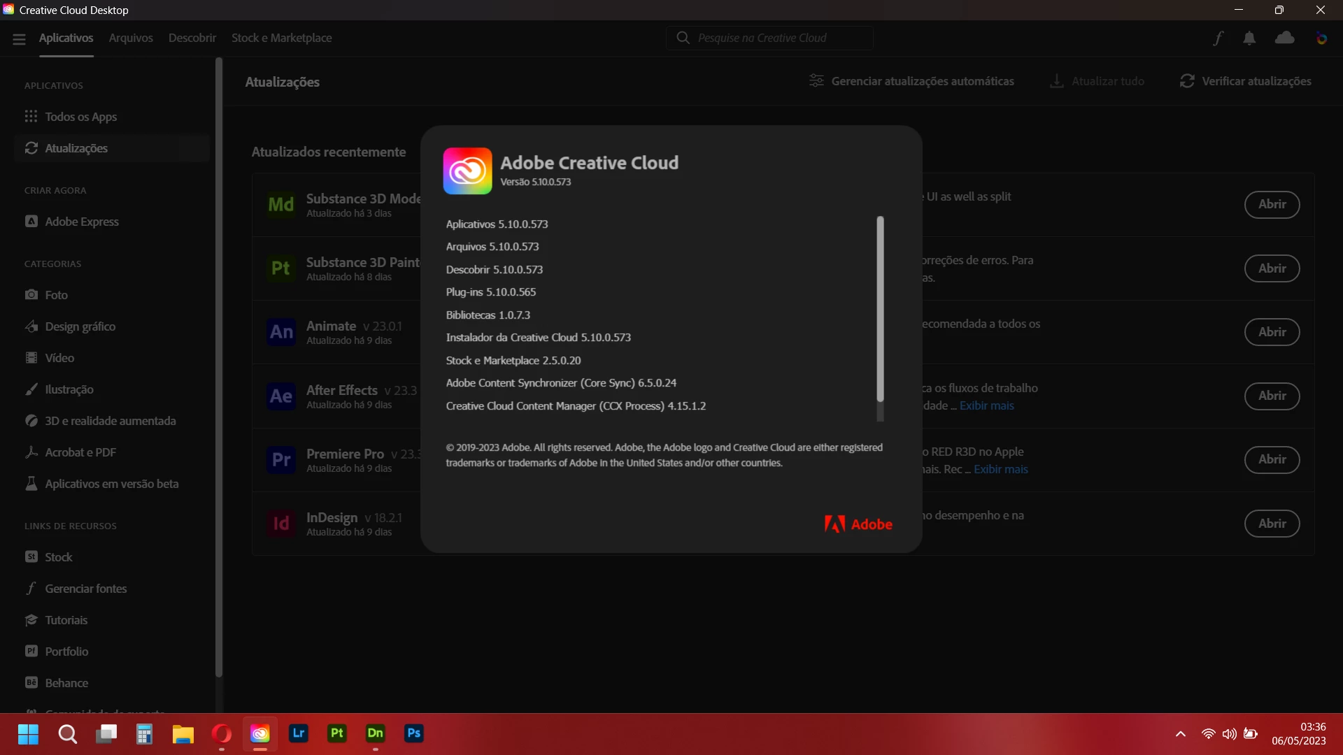 Recebi notificação para atualizar 6 apps (entre eles illustrator e photoshop). Cliquei em atualizar tudo e imediatamente apareceu janela de erro "conflito na atualização" e fechou tudo. Quando reiniciei a creative cloud desktop apareceu como atualizada, mas sem qualquer registro das atualizações.