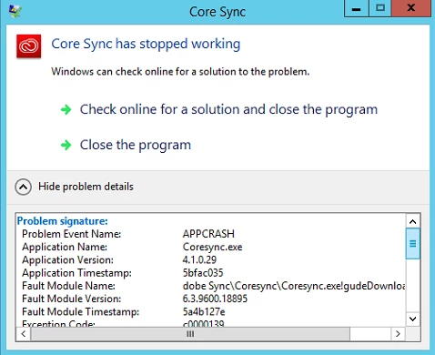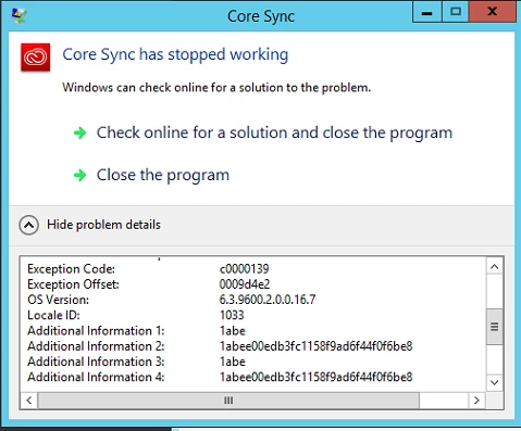 Core Sync crashing on startup