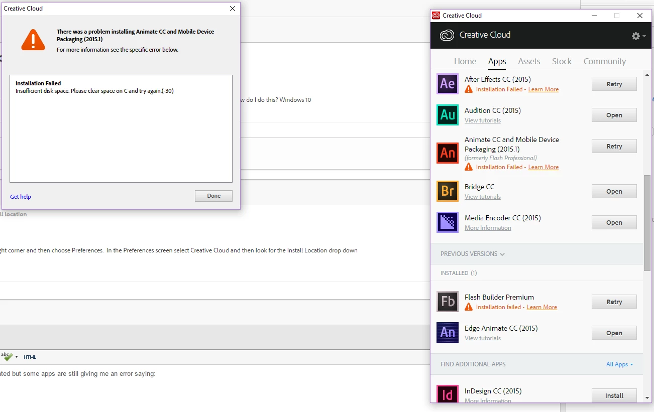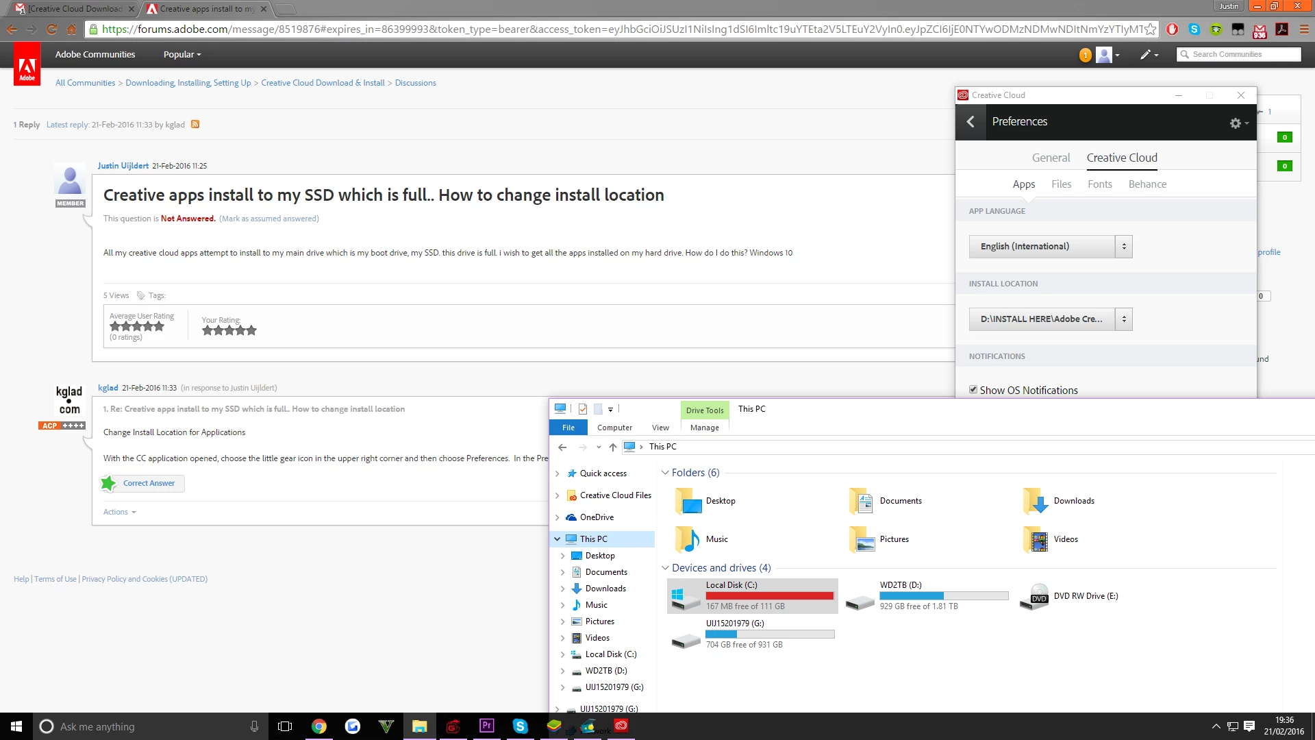 All my creative cloud apps attempt to install to my main drive which is my boot drive, my SSD. this drive is full. i wish to get all the apps installed on my hard drive. How do I do this? Windows 10