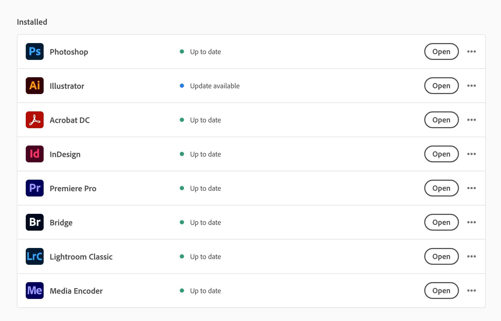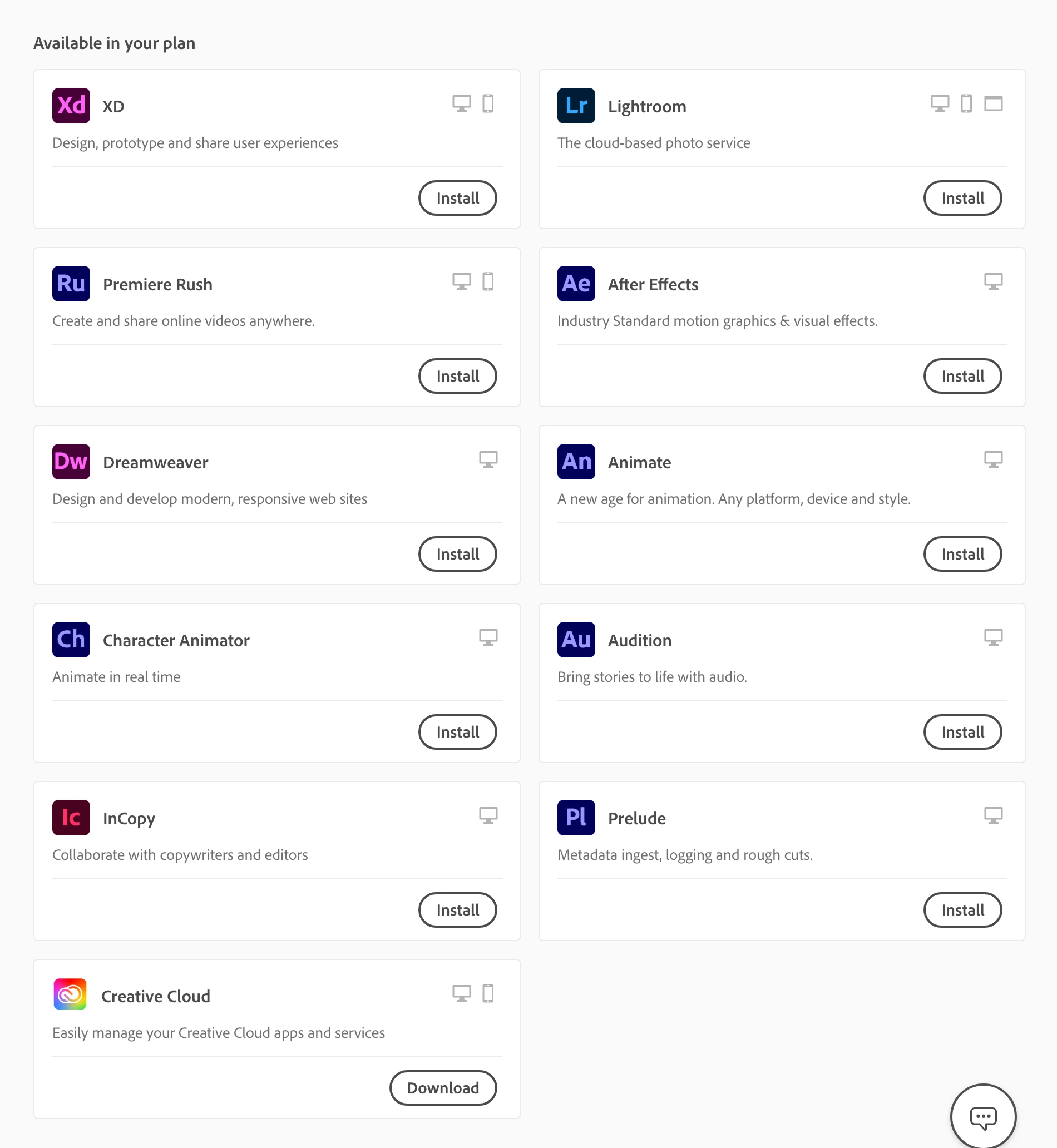 Creative Cloud All Apps plan however not all apps are displayed to download on MacOs