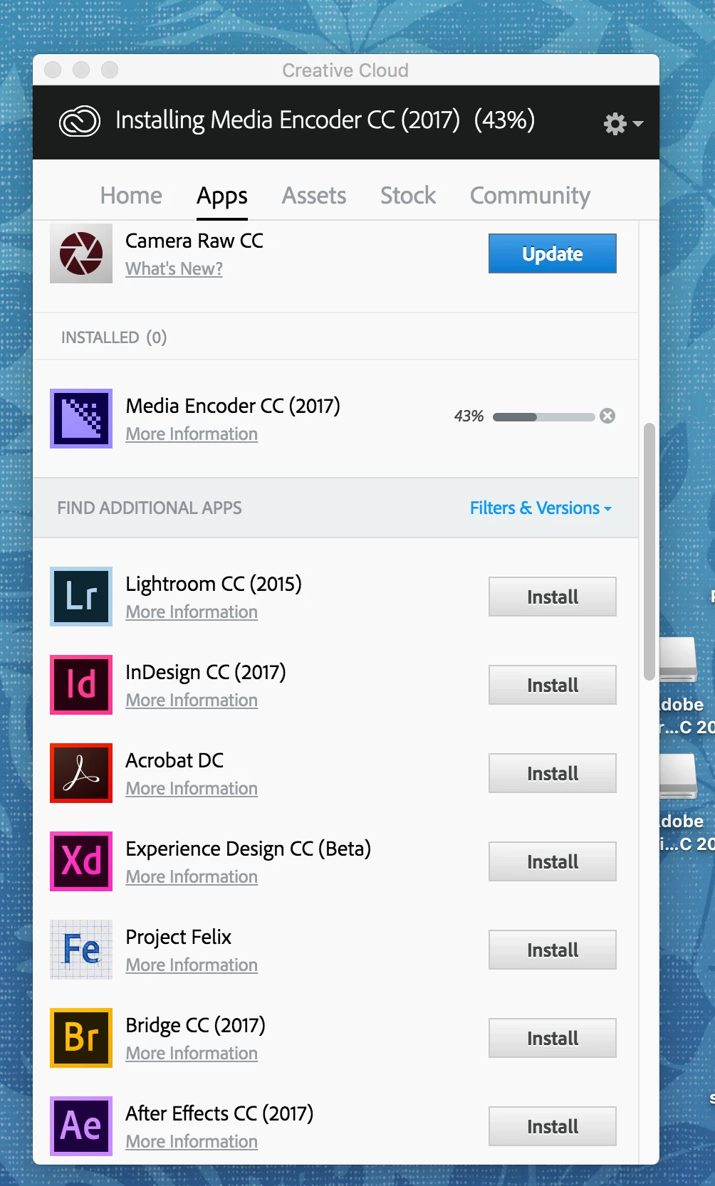 After having two Adobe support technicians spend 2 hours each on two different days they finally elevated me to some overseas upper tier support (who called me from a "10000000" number which my phone blocks. In any event, I am on a newer mac running 10.12.4. I have started, out of the blue, having issues with Adobe CC updating and installing. It hangs on 43% most of the time unless itis Adobe Acrobat which tells me I have a previous "higher" version installed and cannot install. Which I do not have another version. Here's a photo of the unsolved recurring, frustrating, losing money every hour this continues, problem:
