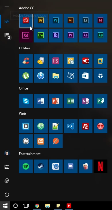 Here are the CC apps, all installed and on my start menu, all starting up correctly despite having lost all my workspaces and configs...
