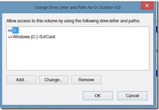 The SD Card has both a drive letter and the mount point on the C drive.  If this is what you see then you are ready to proceed.  Cancel out of this window and close the Disk Management console.