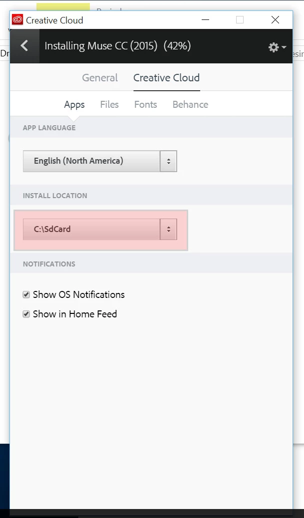 Creative Cloud - BUG Changing Installation Directory for Apps