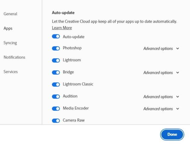 In the Preferences for Creative Cloud Desktop, there are settings for each app to control auto-update. I've got auto-update turned on for all my Creative Cloud apps, but none of them get updates automatically. I receive multiple notifications on my Windows Desktop telling me that app updates are available- but why isn't Creative Cloud automatically updating them??