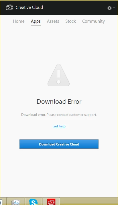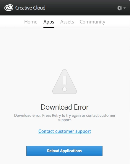 Today, my Illustrator would not open, apparently due to an update error. I checked the Creative Cloud App, and when I clicked the apps tab, It read, "Download Error, please contact customer service." I found someone on here who said that reinstalling creative cloud worked, so I went through the process of uninstalling and reinstalling the app, hoping it was just a simple case of corruption. No dice, I'm still getting the same message. I've done an inventory and of the apps I have installed only Photoshop is opening, presumably because it was the only one able to update before this whole idiocy started. Everything else, including Adobe Acrobat, which I very much need, are not working.