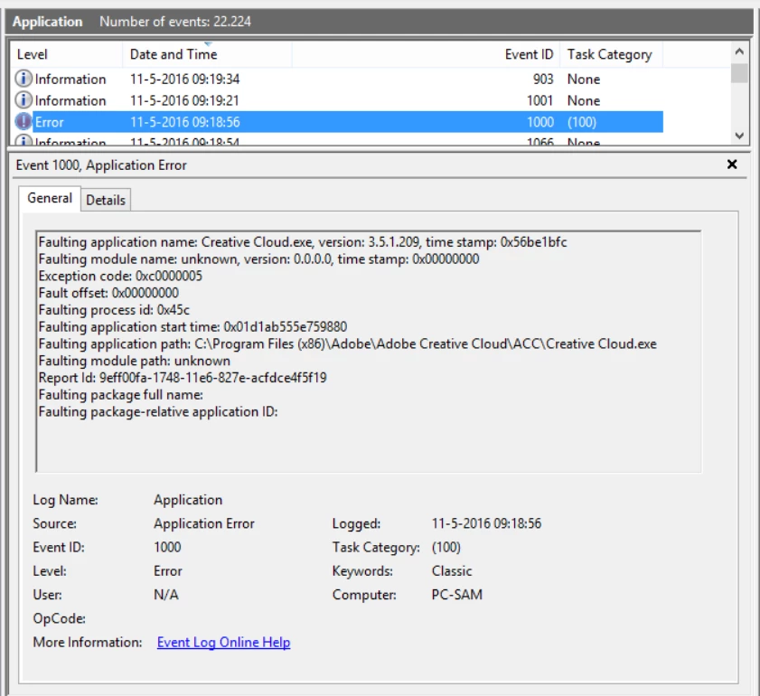 Once I have restarted my computer immediately a pop up appears which reads "Creative Cloud has stopped working".