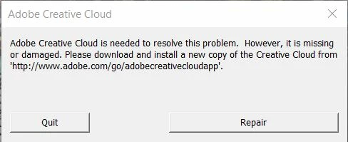 This issue first popped up yesterday. While I was working away as usual in InDesign, suddenly a little window popped up saying something like "error: creative cloud needed to fix this issue but could not be found on this computer" and I had the option to click on fix and it then proceeded to download and install creative cloud, eventhough I already had it on my laptop. Today, this happened again, twice even, throughout the day. I was never doing any specific action, I was always just working away normally in InDesign or Illustrator or Dimension. Curiously, when it happened earlier I happened to be rendering something in Dimension, but the rendering process continued in the background without any issues, while CC was supposedly installing itself again. The previous time Dimension also kept working, but I was not able to open a decal in Photoshop, while CC was "installing". It is eating up a lot of time, downloading and installing for like 30min every time. I'm at a complete loss. Any ideas?