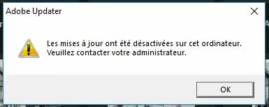 Je ne peux pas faire les dernières mise-à jour d'Adobe sur mon pc au travail.