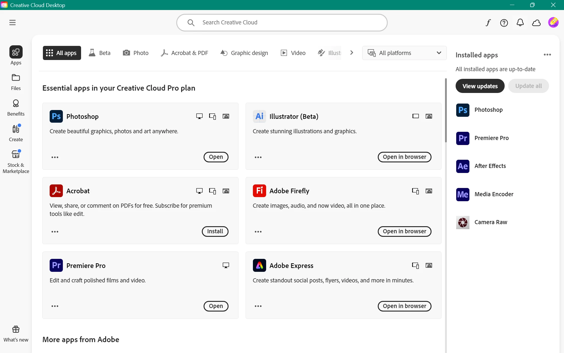 My Creative Cloud app says that Illustrator is not available for my device. When I go through the website download link, it redirects to the Creative Cloud app. I have successfully downloaded Photoshop, Premiere, and After Affects without a problem, so there is no reason I shouldn't be able to access it. I did a session with Adobe support previously and they were unable to resolve it.