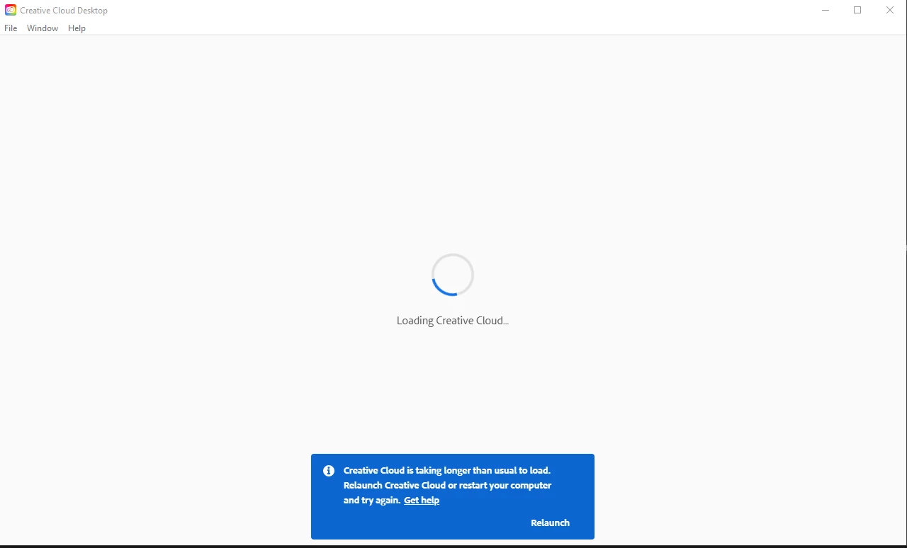I am trying to install a single use of Creative Cloud on my laptop. I have had no issues installing it on my other devices; however, on my new Dell that has been reimaged twice, I get an error that says "Creative Cloud is taking longer than ususal to load. Relaunch Creative Cloud or restart your computer and try again."