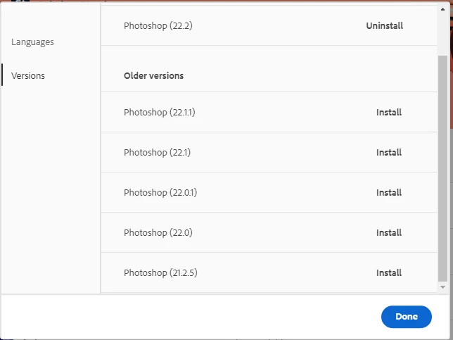 My Creative Cloud Desktop showes me an available Update to PS v21.2.5, but i priviously upgraded to v22.2.
