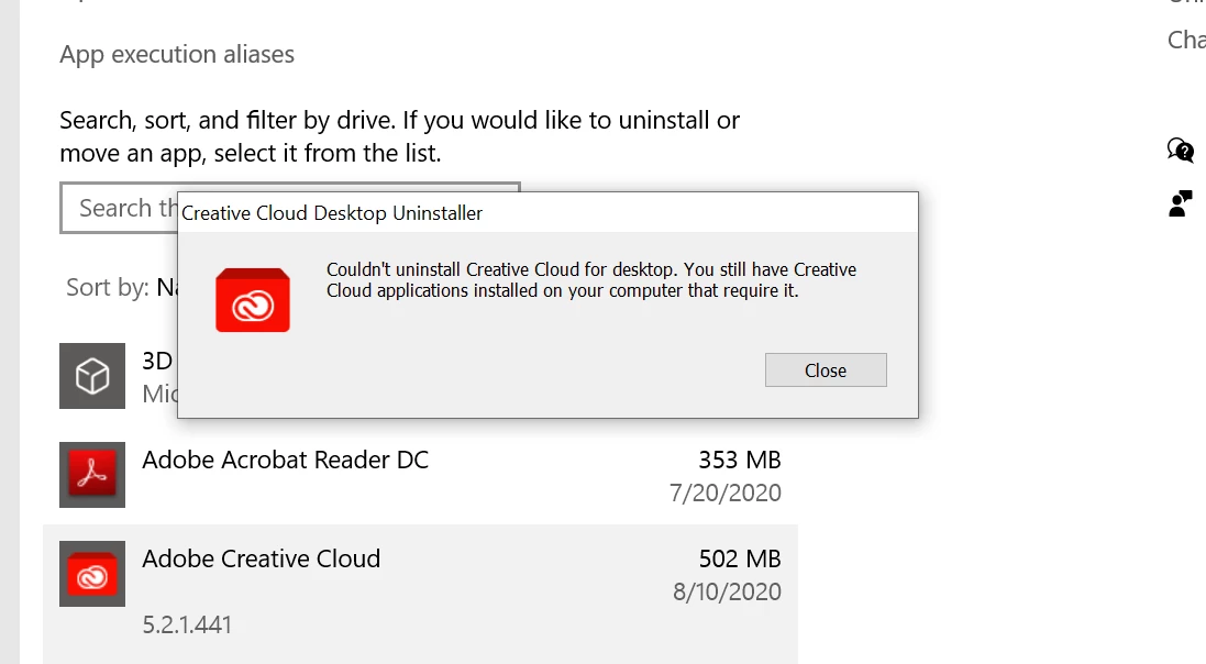 But when I try to uninstall it, I can't because I still have other Adobe products installed: