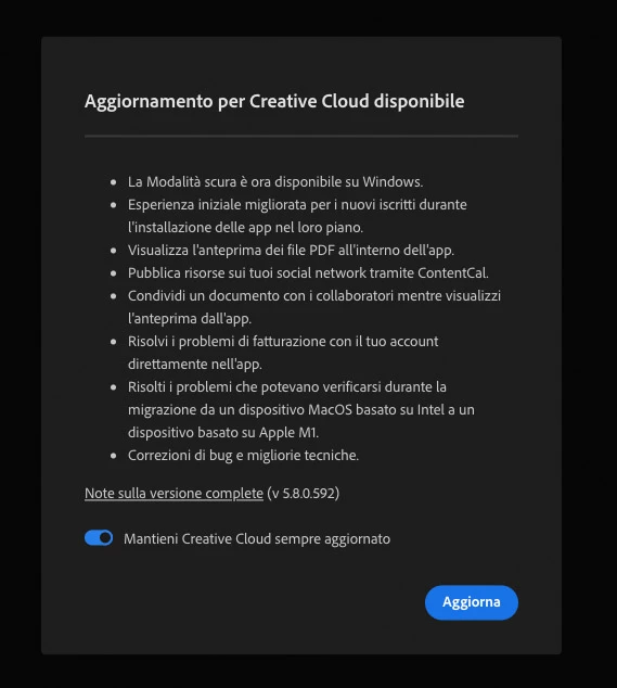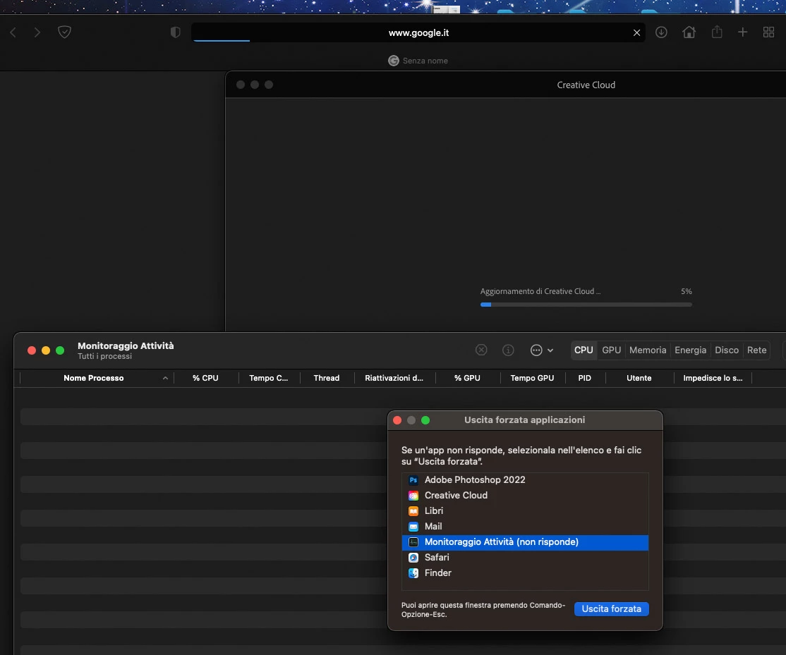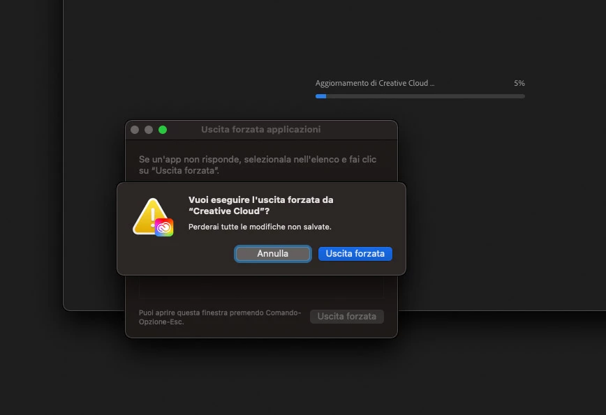 Yesterday a Creative Cloud update notification appeared, I started the download but it stopped at 5%.