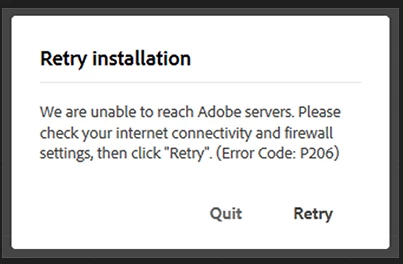 Exit Code: 113 -------------------------------------- Summary -------------------------------------- - 3 fatal error(s), 0 error(s), 0 warnings(s) FATAL: Fatal Error '113' occurred while download FATAL: Fatal Error '113' occurred while download FATAL: Error occurred in download of package (Name: AdobePremiereRush2AllTrial Version: 2.8.0.8). Error code: '113' -------------------------------------------------------------------------------------