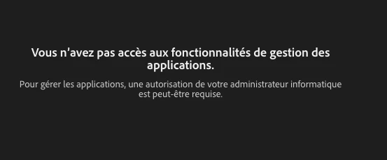Creative Cloud. Vous n’avez pas accès aux fonctionnalités de gestion des applications