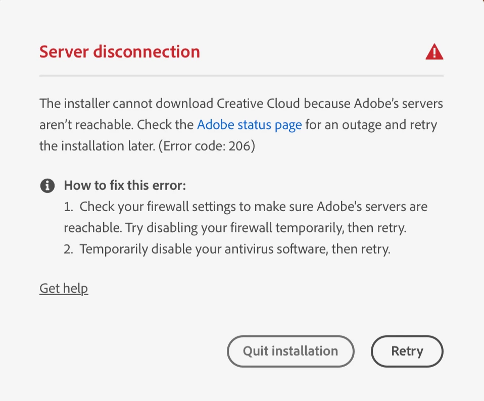 I just tried reinstalling the Creative Cloud app, but it gave this error: