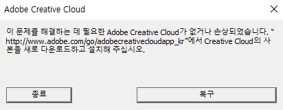 "crative cloud 의 사본을 새로 다운로드하고 설치해 주십시오."
