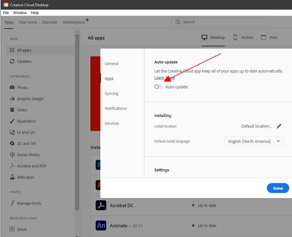 creative cloud is automatically updating apps at startup even though I have the auto update turned off. tripled startup time this morning with the photoshop update. What do I need to set in preferances besides the auto update to off to insure this does not happen? I want to control when to update my apps.