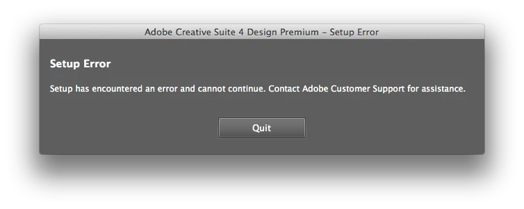 Next, I tried installing CS4 from the admin account which failed as well.