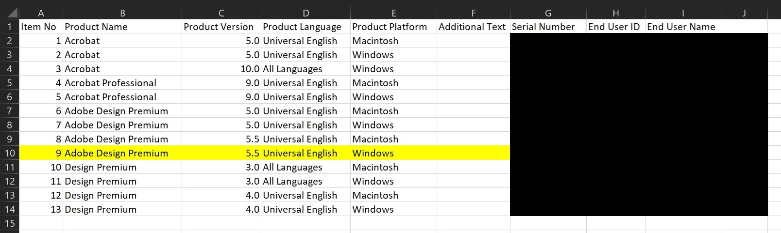 (Attached: screenshot of my registered serial in the Adobe Account portal and in TLP export document, with serial numbers redacted)