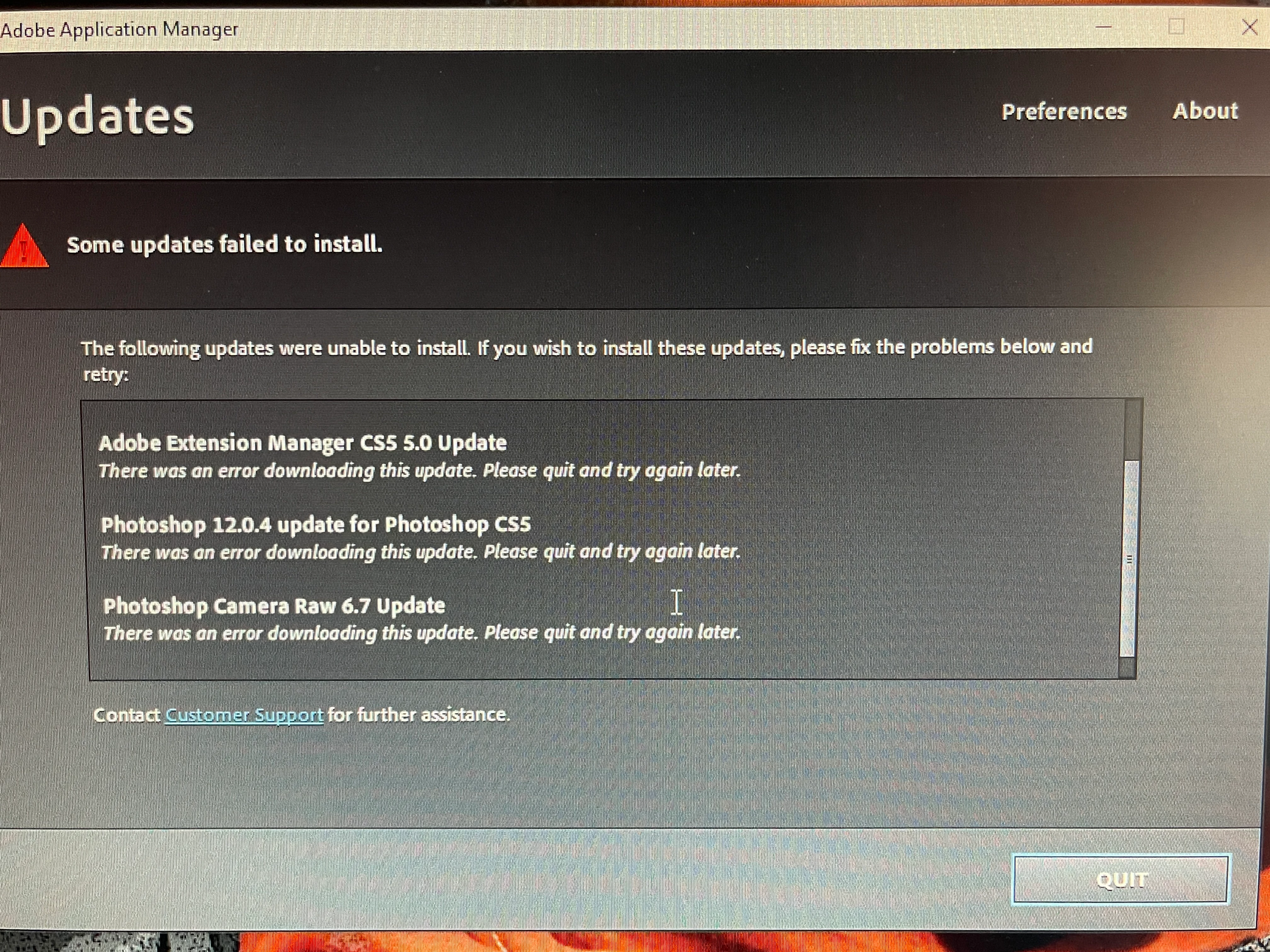 CS5 updates fail windows 10