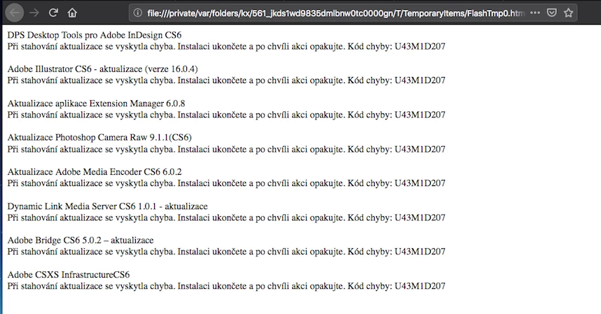 My HDD on my vintage mid 2011 iMac recently passed away and I was forced to begin anew with a SSD. I am a proud owner of box version CS6 Standard Design, but after installing it on High Sierra (highest available macOS for this can), the Adobe Application Manager crashed in the final phase of updating, complaining something about this: U43M1D207: