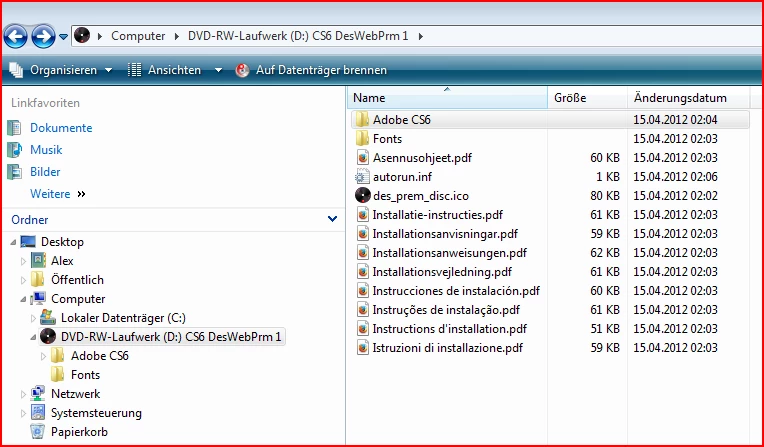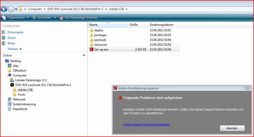 CS6 kann nicht von CD installieren.
