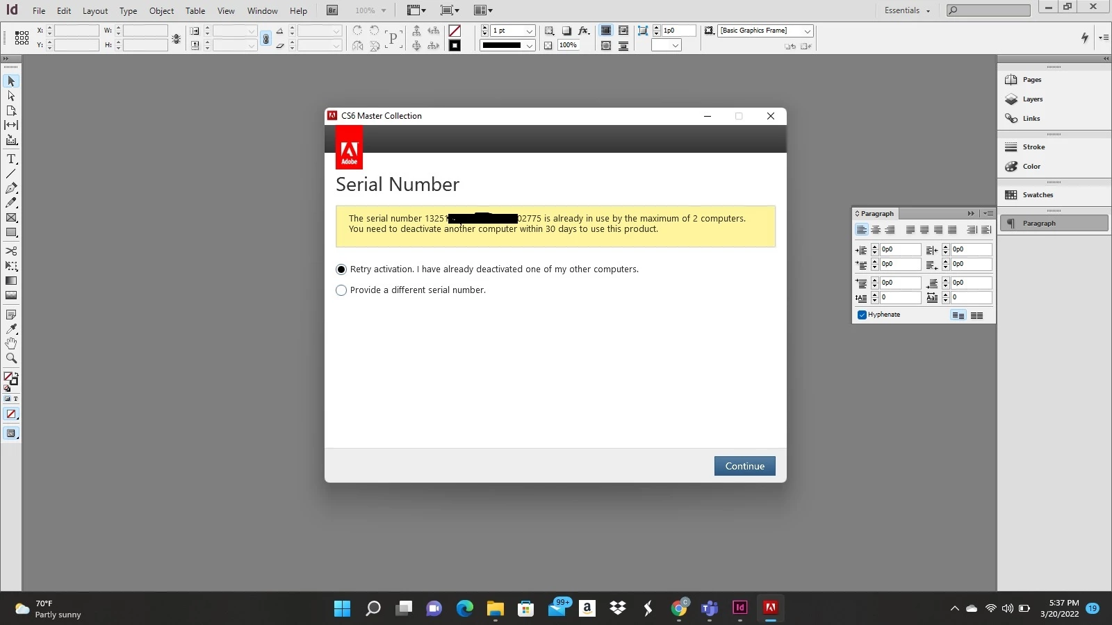 CS6 Master Collection Activation Issue
