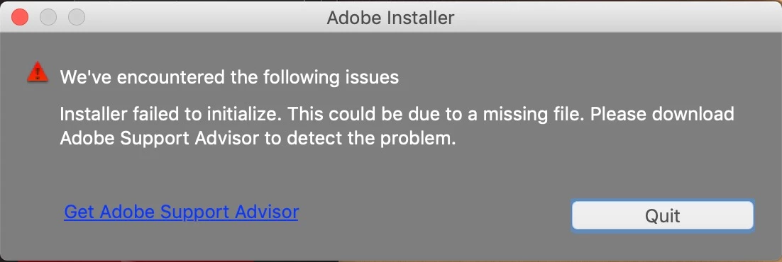 Exit Code: 39 Please see specific errors below for troubleshooting. For example, ERROR: DW042 ... -------------------------------------- Summary -------------------------------------- - 0 fatal error(s), 2 error(s) ERROR: Directory does not exist : /Users/peabody08/Applications/Adobe/OOBE/PDApp/DECore/DE6/resources/uninstall/Uninstall Product.app ERROR: DW042: ARP Entry couldn't be created for language : en_US ——————————————————————————————————————————