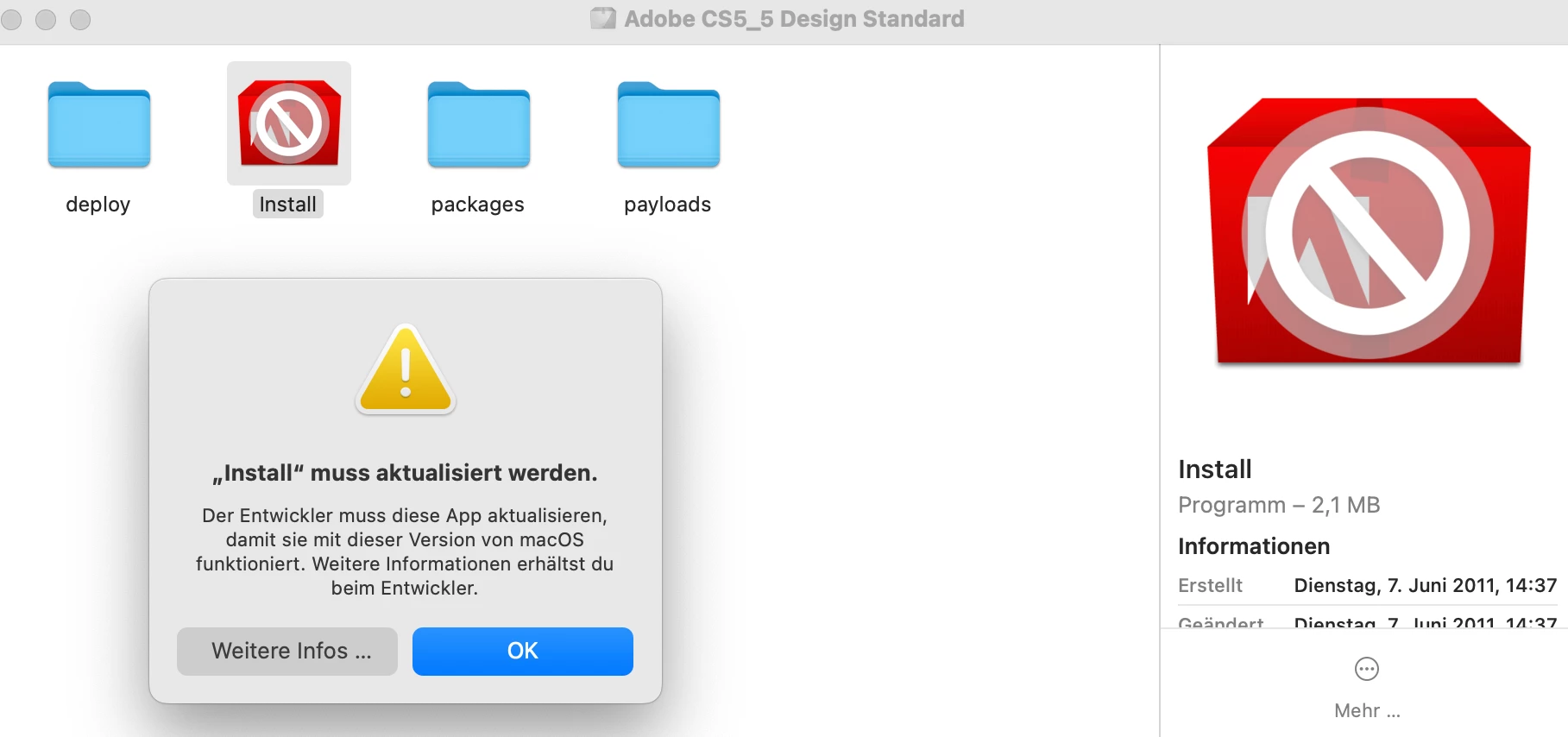 Design Standard CS5.5 "Install" muss aktualisiert werden wenden sie sich an den Entwickler